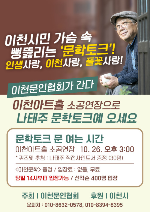 이천에서 열리는 문학토크에 여러분을 초청한다.