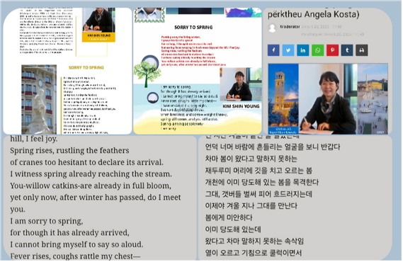 문학의 인생은 바보의 삶과 같다. 자신의 아름답고 슬프고 어려운 이야기도 쓰지만, 무엇보다 다른 사람의 마음을 살피는 작업이 가장 중요하기 때문이다. 그렇게 시를 쓰고 칼럼을 쓰다 보니 기독여성신문사에서는 여성지도자상(2024)을 받기도 하였다. 아직 봄이 멀었지만 2025년 벽두에 내 시가 세계 유수 매거진에 발표되기 시작하였다. 바로 “봄에게 미안하다”는 벨기에의 아투니스 갤럭시 포이트리 매거진, 알바니아 키케로니 신문, 파키스탄의 신드쿠리 신문, 인도 사르노라타, 스페인 바르셀로나 리테라리 매거진 등이 그것이다.