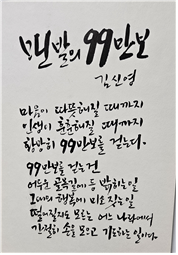 이천에서는 모든 것이 새롭게 시작되었다. 무엇보다 지금까지의 핍진을 털고 일어나기 위해 끊임없이 걸었다, 그 시기에 나온 시집이 <맨발의 99만 보>(2017)다. 하루 3만보를 걷기도 하면서 인생과 문학과 삶과 가족을 생각하였다. 이제 반드시 희망이어야 하는 이천의 땅, 이 생면부지의 이천에서 나는 어떻게든 일어서야 했다. 남편이 망쳐놓은 가정 경제를 일으켜 세워야 했다. 맨발로 시작하는 인생인 것이다.