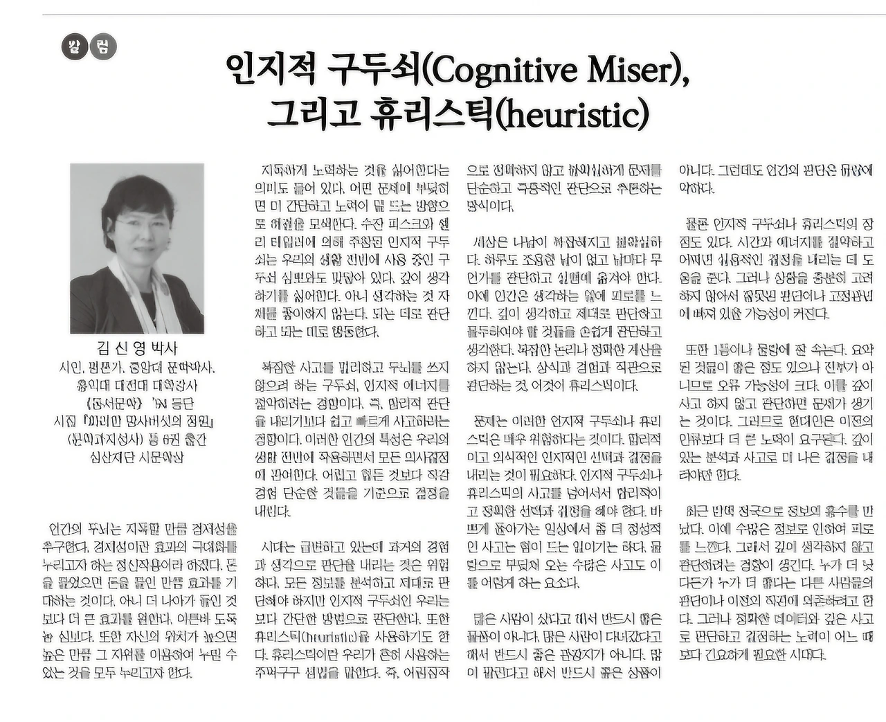 인지적 구두쇠(Cognitive Miser), 그리고 휴리스틱(heuristic)