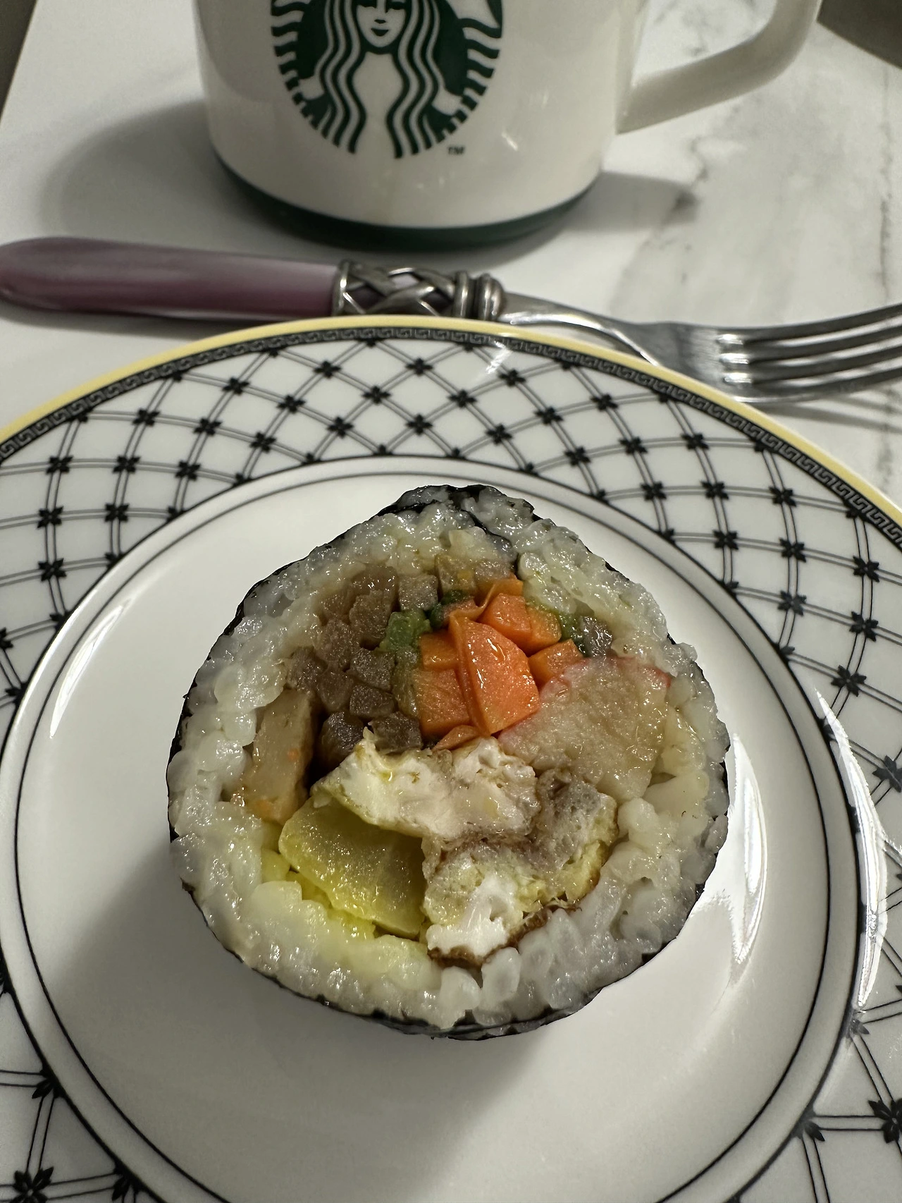 접시에 착하게 놓여 있는 김밥 두 개를 보면서 그날 들렸던 소리 글들이 다시 떠올랐다. 우동 한 그릇 처럼, 해피엔딩이라는 다행스러움은 여유를 챙겨주는 법이다. 우동이 그랬듯이 김밥 두 개는 굶주린 이들에게 두 공기의 밥이 된다. 세상은 점점 배려는 없어지고 배척이 맨 앞에 서 있다. 우동 한 그릇과 김 밥 두 개의 배려가 세상을 해피엔딩으로 만들어주는 것, 하지만 무관심이다. 상식은 사라진 세상이 되었다.