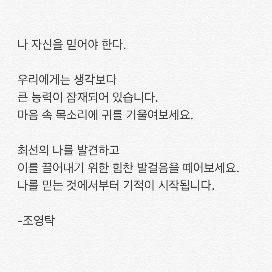 바로 자신을 믿어야 한다는 것.