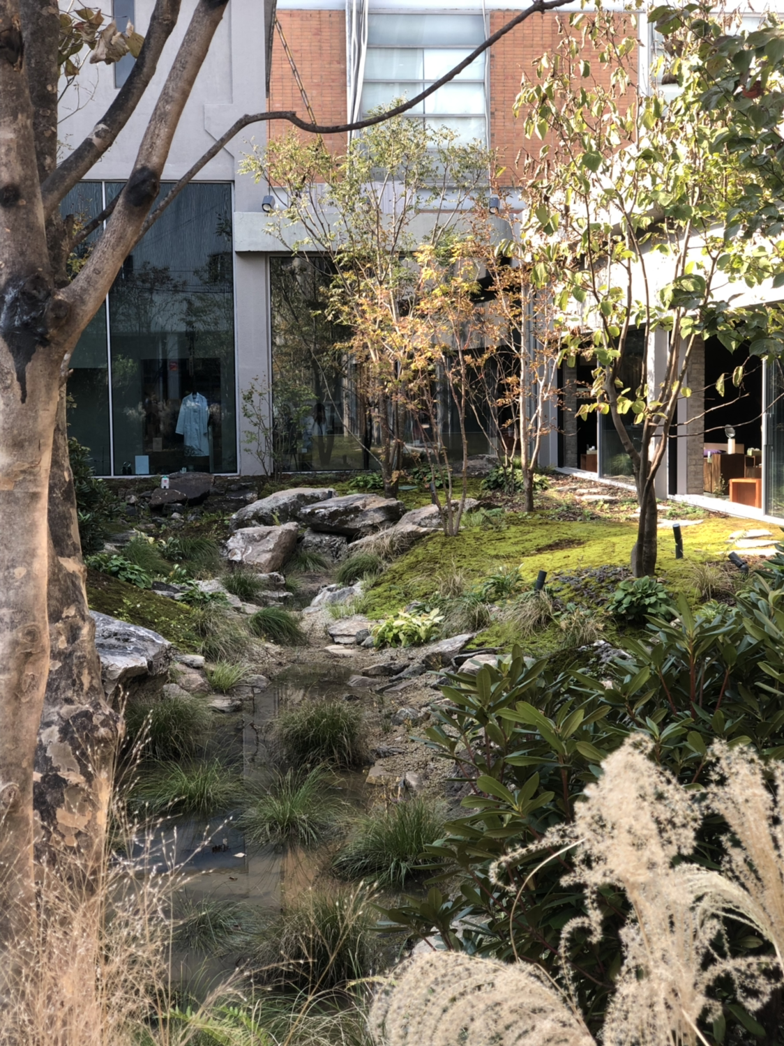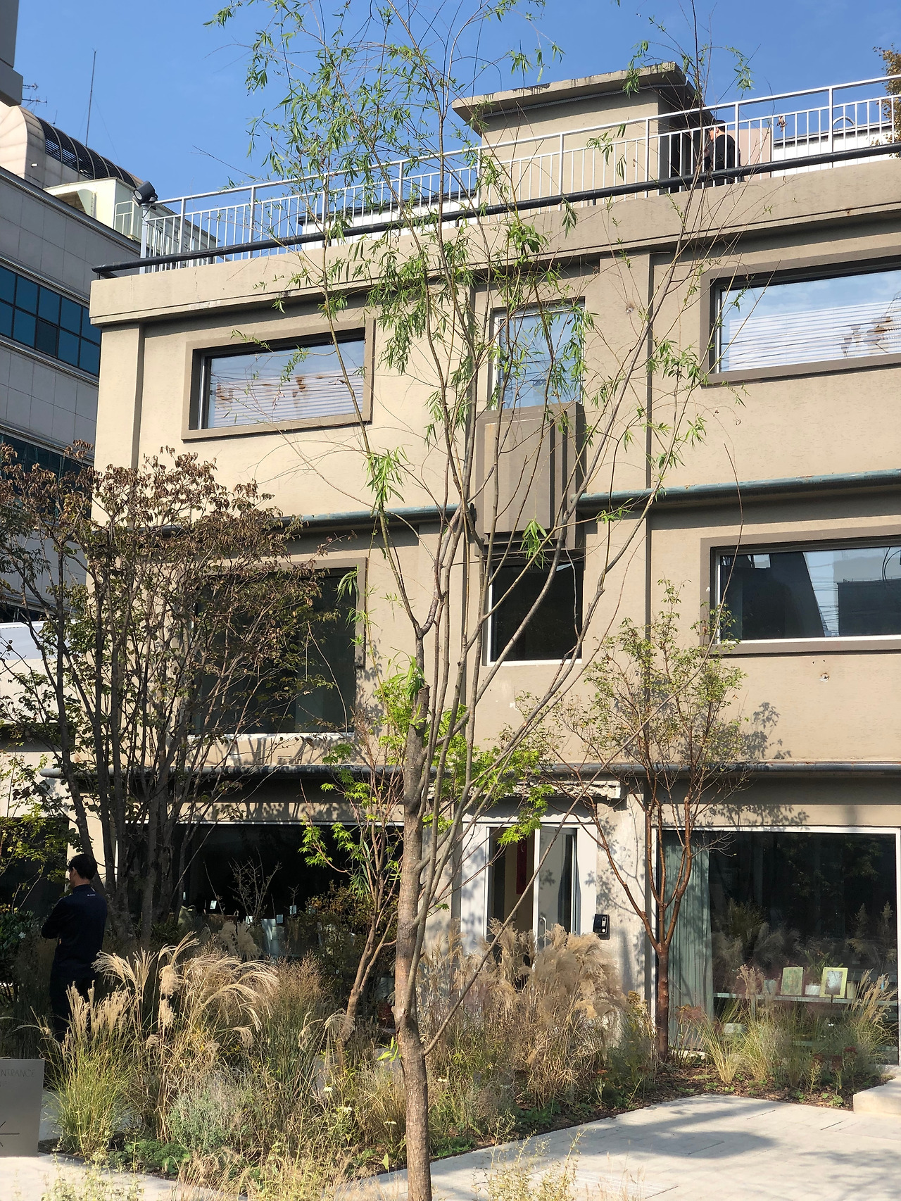 자연과 어우러진 '그리너리'는 요즘 핫플레이스에서 빠질 수 없는 요소 중 하나이다. 카페를 오픈하든, 쇼핑몰을 오픈하든, 새로 오픈하는 공간에 각종 식물로 연출되는 '그리너리함'은 필수다. 그리너리함으로 가득한 공간에서 지친 마음에 자연과 힐링의 감성을 한껏 채울 수 있기 때문이다. '아모레성수'는 이 부분 역시 놓치지 않았다. 건물 중앙에 빗물로 만든 연못이 있는 '빗물정원(!)'을 만들었고, 공간 어디에 있든 작은 틈새를 통해서라도 그리너리함을 느낄 수 있도록 설계했다.