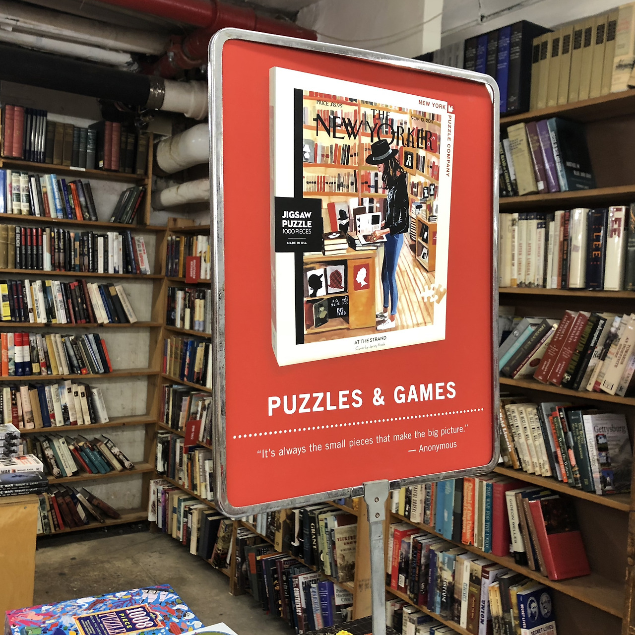 뉴욕 맨해튼에 위치한 스트랜드 서점은 1927년에 문을 연 서점으로 소유한 책을 한 줄로 세우면 18마일(약 29km)이 된다는 의미에서 '18마일의 책들'이라는 슬로건을 가지고 있다.