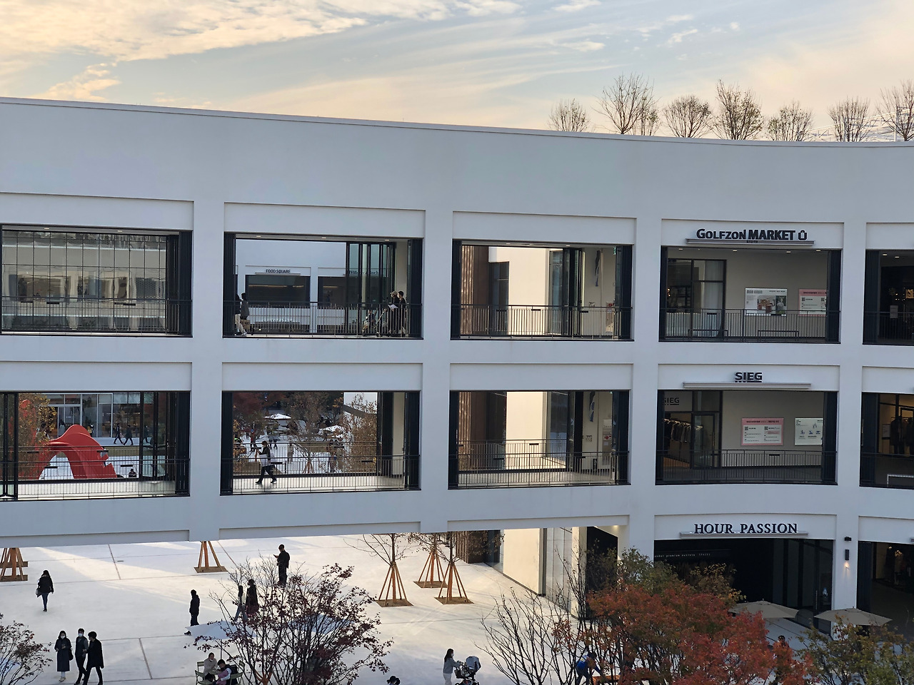 그런데 남현아에는 이런 원형 공간 사이에 네모난 건물이 하나 서있는다는 점이 좀 특이하다. 이 건물의 이름은 '큐브스퀘어.' 이 건물에는 더한섬하우스FX, MOKA 가든, 서점/브런치카페 등 남양주 아울렛에서 눈여겨 볼만한 라이프스타일 MD들을 한 곳에 모아놨다. 통창으로 이루어진 이 건물은 빛과 구름을 반사해 보기에도 아주 멋스러웠다. 방문했을 때 그냥 지나치는 게 아니라, '이 부분이 다른 아울렛과 다른 특이한 점이구나.' 하는 생각을 하고 보아도 재밌을 것 같다.