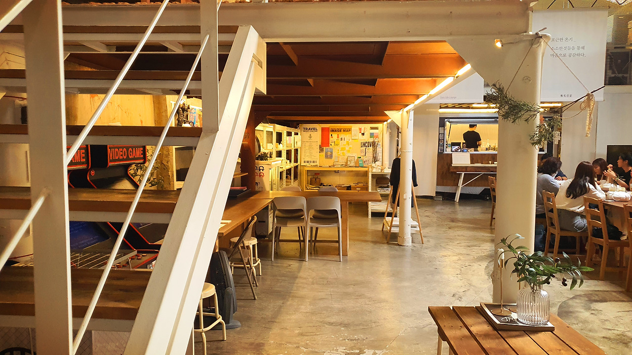 사회적 거리두기 강화라는 어려움 속에서도 오프라인 플랫폼으로서 많은 변화들을 반영한 점들이 눈에 들어왔습니다. 무명일기는 기존 항만수리창고의 건축물 구조를 살려 리모델링한 곳으로 크게 1층과 2층을 나눠서 보면 1층엔 새로운 레트로 느낌의 소품들이 매력을 뽐내고 있었습니다. 항상 드는 생각이지만 입구에 들어와서 바라보는 공간 전체의 아우라는 압도적이고요.