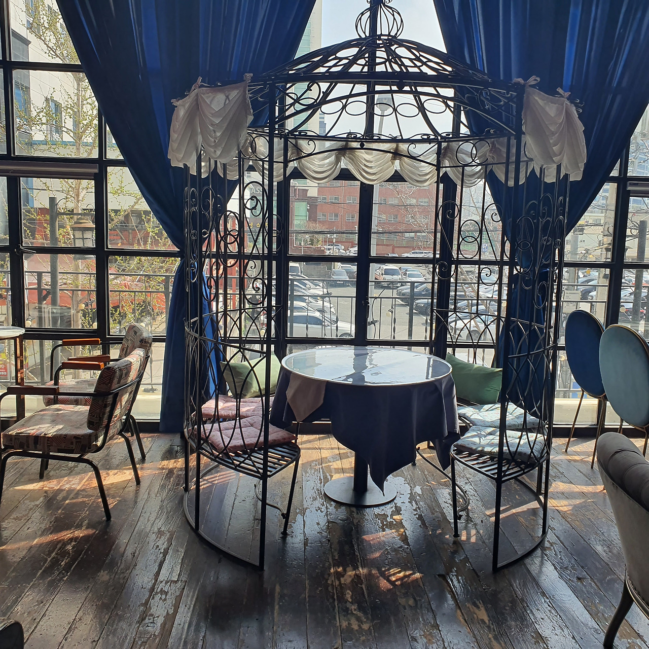 온라인으로 많은 활동들을 하면서, 역설적으로 괜찮은 오프라인 공간을 찾고 소비하는 게 어려운 일이 되었습니다. 그런 측면에서 로망 34는 재미있는 소품도 참 많습니다. 아래 사진을 한번 보실까요. 다소 투박한 느낌의 나무 바닥과 앤틱 한 테이블, 그리고 중세 시대 궁전에서나 볼법한 가구들이 보는 이들로 하여금 호기심을 자극합니다. 기본 인테리어 디자인이 이렇다 보니, 사진을 찍어도 하나의 각도가 아닌 여러 각도에서 인생 샷을 건지기 위한 챌린지들이 시작되고 있더군요(웃음)