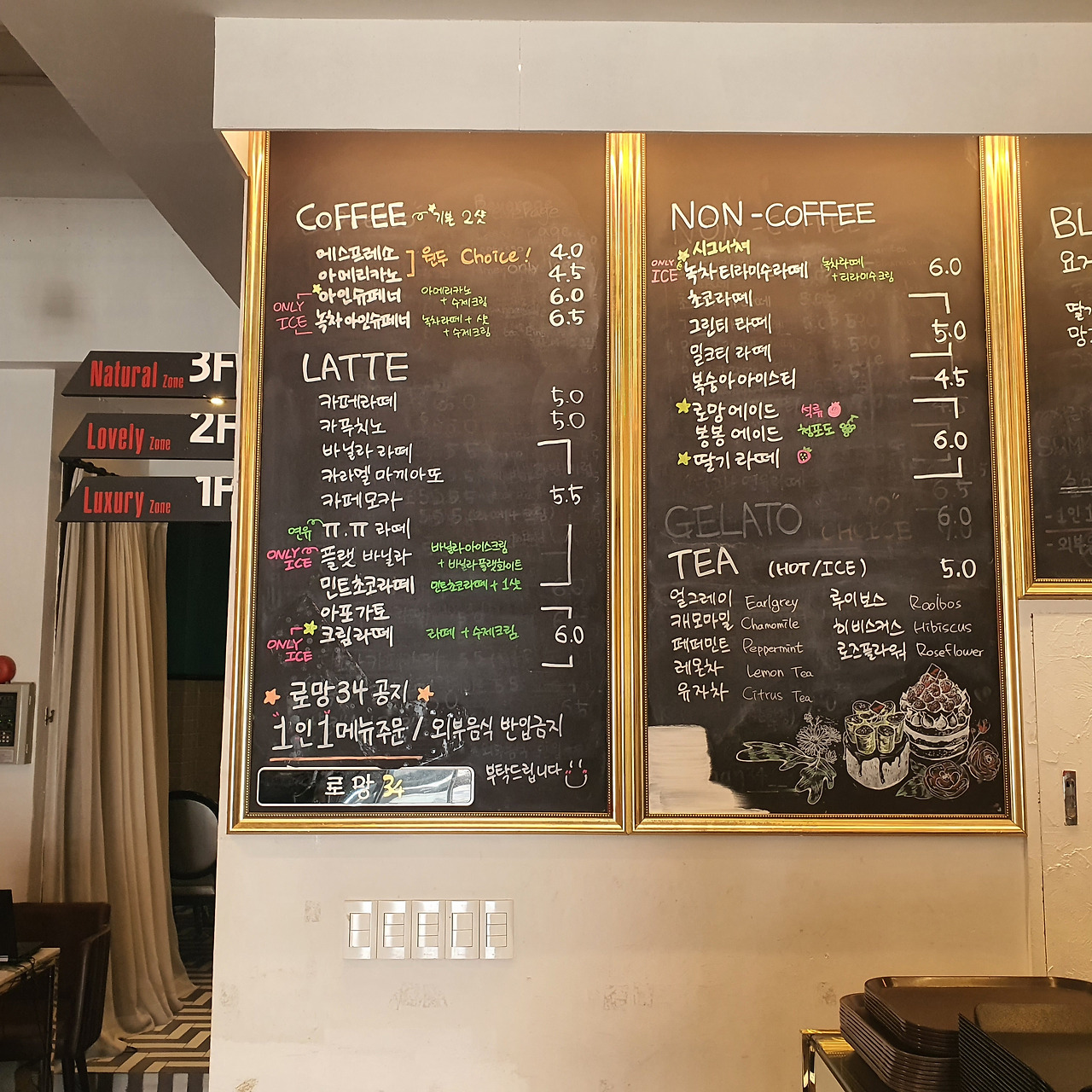 로망 34가 인스타그램을 비롯한 SNS에서 핫한 이유는 아무래도 층별로 뚜렷한 콘셉트가 있고, 공간 구성이 다채로워서 일 텐데요. 1층은 Luxury Zone, 2층은 Lovely Zone, 3층은 Natural Zone 이렇게 한 건물이지만 각 층마다 다른 형태를 띠고 있습니다. 저는 처음에 이 공간을 방문했을 때, 1층부터 위층들을 살펴보면서 카페라기보다는 스튜디오 같다는 느낌을 많이 받았는데요. 공간을 기획할 때도 이러한 의도를 가지고 연출을 했다는 느낌을 제대로 받을 수 있었습니다.