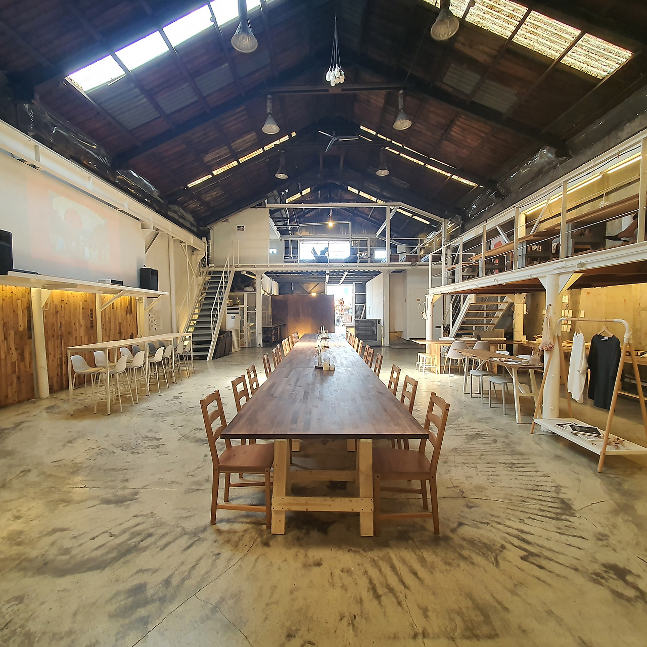 네, 맞습니다(웃음) 짐작하신 분들도 있겠지만 이곳은 기존의 건물을 활용하여 다른 용도로 재생시킨 곳인데요. 항만 수리 공업소였던 곳을 F&B를 비롯하여 지역 기반의 문화 행사가 열리는 복합 문화공간으로 탈바꿈시켰습니다. 문 밖으로 나가면 조선소 작업장이 보이는 바닷가 근처의 이색 공간이기도 합니다. 건물 안으로 들어가면, 그 아우라를 제대로 느낄 수 있는데요. 아래 사진을 보면 엄청난 규모의 공간이 주는 충격에 잠시 멍해지게 됩니다.