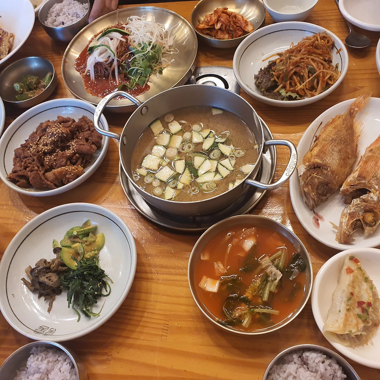 점심시간을 살짝 넘은 오후 2시쯤, 풍원장이란 이름으로 유명한 시골밥상 집을 찾았습니다. 기와집 건축 구조의 식당으로 돼지불고기 정식과 보쌈 정식 등을 파는 곳인데요. 식당 앞에 널찍이 주차공간이 마련되어 있어서 좋았고, 돌솥밥에 된장찌개, 각종 나물, 생선 등 반찬이 푸짐하고 맛있어서 만족스러웠습니다.