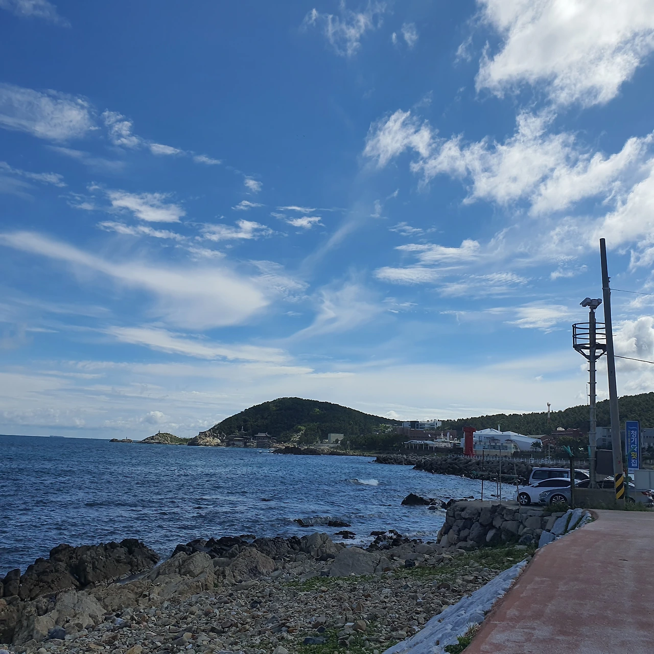식당을 나와 차로 조금만 이동하면 오시리아 해안산책로를 만날 수 있는데요. 아난티 힐튼 호텔이 들어서면서 주변 경관이 정비되고, 널찍한 산책로가 만들어졌는데 푸르른 기장 바다의 경치가 꽤나 신선한 자극을 주는 곳입니다. 약 2KM 길이로 만들어진 산책로를 여유롭게 걸어봐도 좋고 자갈이 가득한 해변가로 나가 시원한 바닷물에 손발을 적셔보는 것도 재미일 듯합니다.