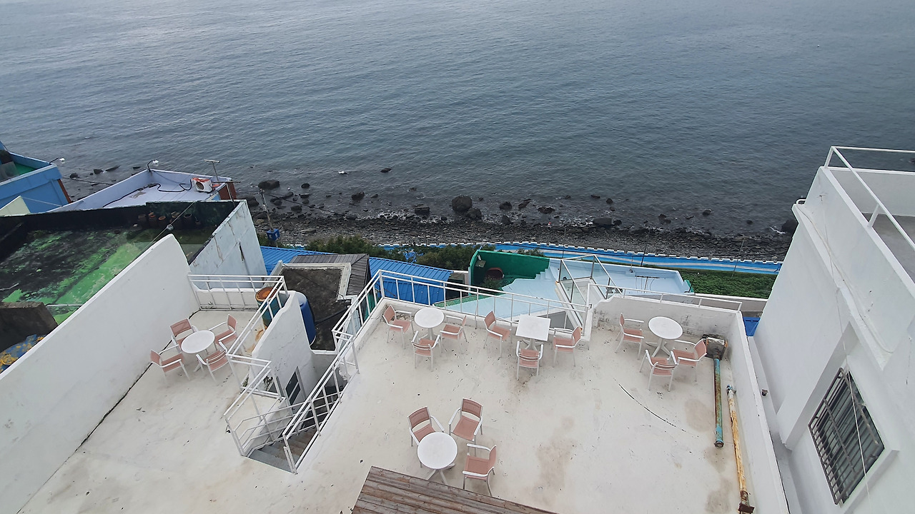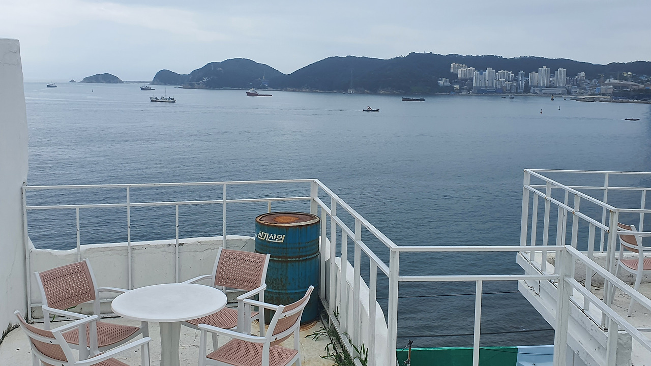 1층 테라스부터 루프탑까지 공간 구석구석에서 바라보는 부산의 바다가 꽤나 운치 있습니다. 매끈하고 화려한 공간 디자인은 아니지만, 화이트 앤 블랙톤의 인테리어는 심리적인 안정감을 주기도 하고요.