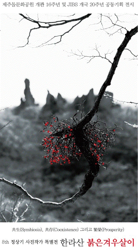 한라산의 하얀 눈 꽃 속 피어난 황홀하고 매혹적인 붉은색에 매혹된 한 작가의 예술혼이 제주에서 펼쳐지고 있다. 제주를 대표하는 자연문화 공간인 제주돌문화공원 오백장군 갤러리에서 3월부터 4월 중순까지 진행중인 정상기 작가의 한라산 붉은겨우살이 사진전과 김종현 작가의 제주 초가 사진전이 그것이다. 작가는 겨울만 되면 미친 사람처럼 카메라 한 대를 벗삼아 깊은 산속으로 들어가 붉디 붉은 겨우살이를 찾아다닌다. 허리까지 쌓인 눈 쌓힌 겨울 한라산을 카메라를 지고 산을 오르며 위험도 여러 번 겪었지만, 겨우살이를 향한 그의 집념을 막진 못한다.