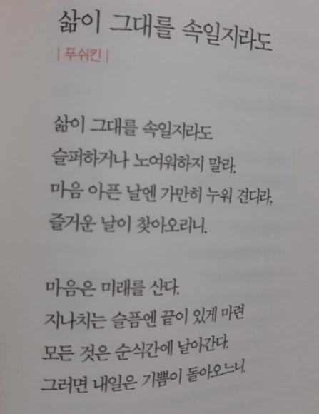 [시 공유] 삶이 그대를 속일지라도 -푸쉬킨 시