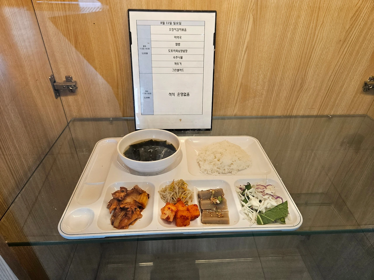 그리고 이용자로써 너무도 고맙고 감사한 마음이다. 오징어 김치볶음과 미역국 메뉴를 보면서 이게 어떻게 내 눈앞에 있는 건지 한번 생각해봤다. 오징어와 미역은 어촌에서, 김치는 농촌의 배추밭에서 시작되었으리라. 손질하여 대형마트로 유통되었으리라 싶다. 그리하여 마트에서 구매한 혹은 식자재 배달을 통해서 식당으로 이동했으리라. 이렇게 생산자로 부터 유통업체를 거쳐 최종 소비자까지 많은 단계를 거치게 된다. 또한 그 재료를 손질하고 음식으로 조리하여 내가 먹을 수 있다는 생각에 가격을 떠나 고마운 생각이 들었다.