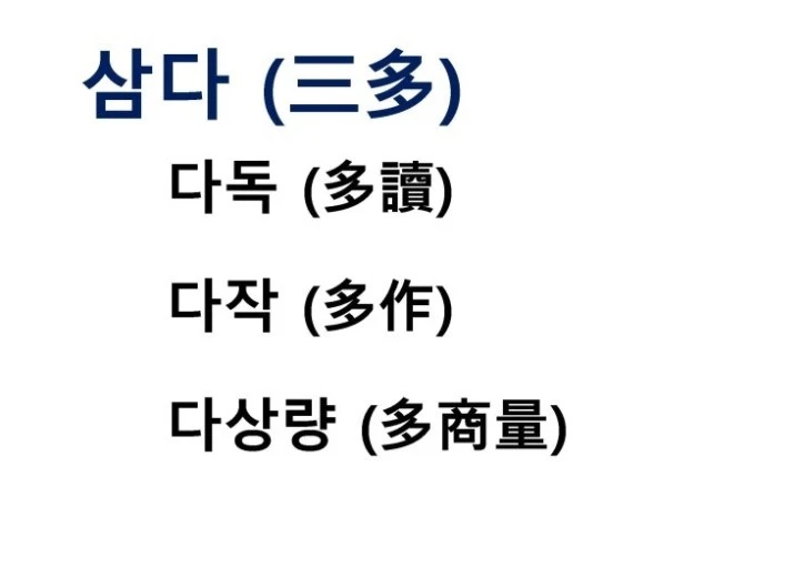 중국 송나라 정치가이자 학자였던 구양수는 글쓰기에 대해 삼다(다독, 다작, 다상량)를 남겼다.