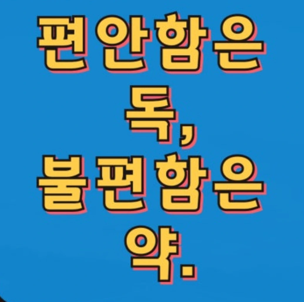 무언가를 이루려고 하는 사람은 자신만의 격언이 필요하게 마련이다.항상 마음속에 간직하고 스스로 힘을 얻는 문구가 필요하다.누군가의 책상에 붙어있는 문구를 보았다.'편안함은 독이요, 불편함은 약이다.'아마도 그는 마음이 흐트러지는 것을 편안함으로 규정한 듯하다.오히려 불편한 것은 자연스럽게 극복하려는 스스로의 처방인 듯하다.그의 꿈이 이루어지길 기원해본다.오늘도 행복하세요. 감사합니다. 고맙습니다. 사랑합니다.♡