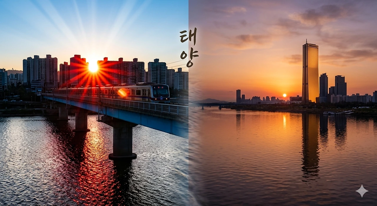 지하철이 강을 건너는 짧은 순간,