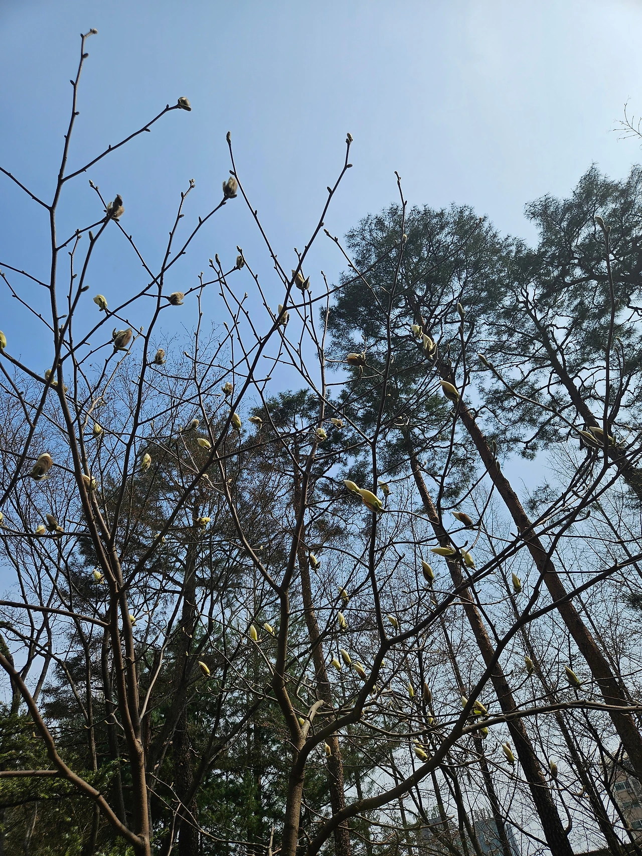 은행나무 가지 끝에서 연둣빛 싹이 고개를 내밀고,