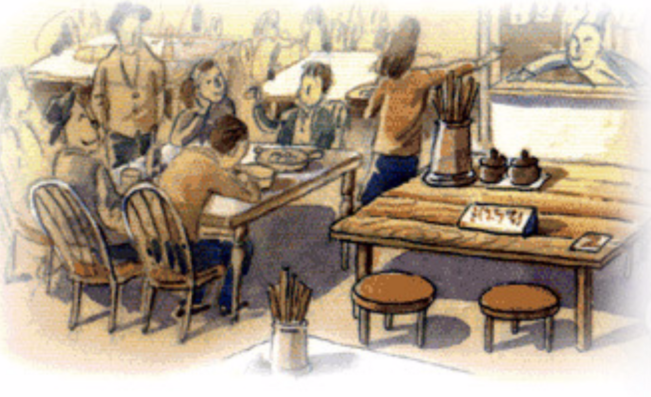 그 말을 받아 주방 안에서 이미 국물을 끓이며 기다리고 있던 주인 아저씨가 큰 소리로 외쳤습니다.