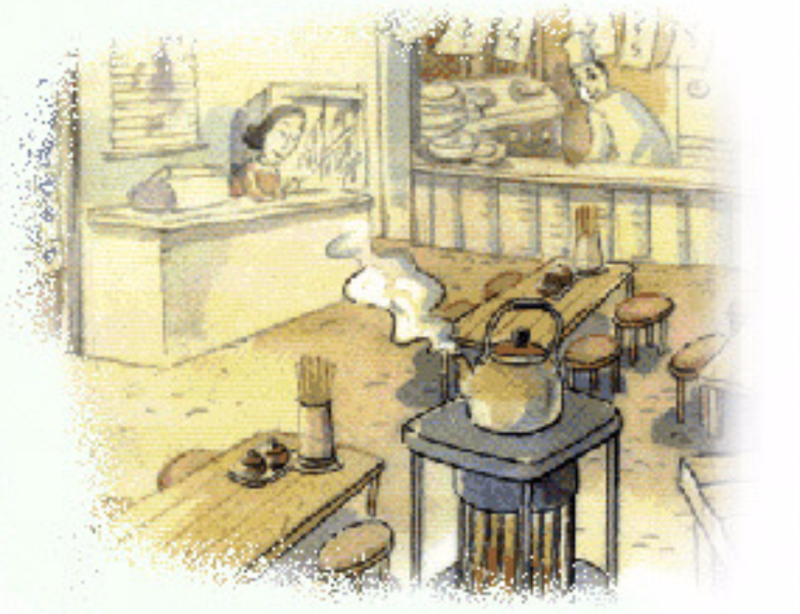 무뚝뚝한 성격의 우동집 주인 아저씨는 입을 꾹 다문채 주방의 그릇을 정리하고 있었습니다.