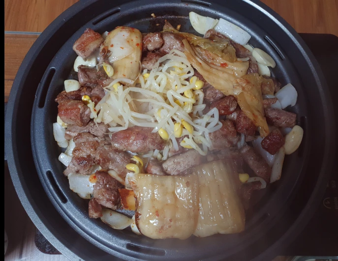 주재료:이베리코 갈비살 500g올리브오일소금, 후추ㅡㅡㅡㅡㅡㅡ콩나물 무침:콩나물소금, 다진마늘, 참기름, 후추, 깨,ㅡㅡㅡㅡㅡㅡㅡㅡㅡㅡㅡㅡ야채: 양파, 묵은지, 상추, 마늘, 청양고추 (선택)