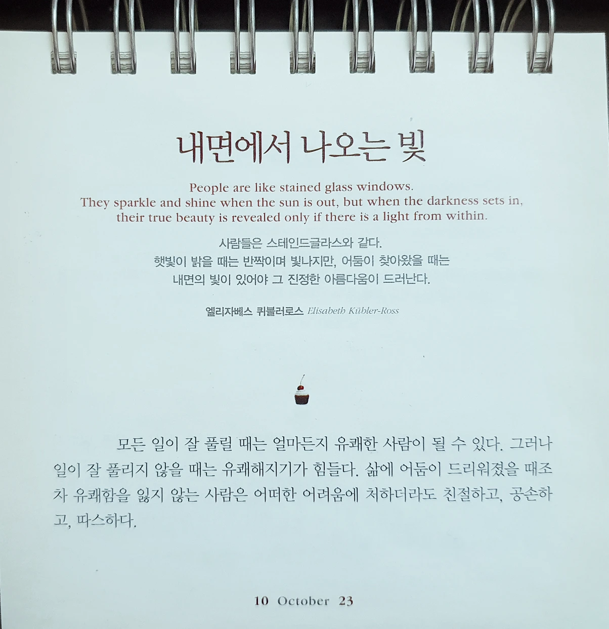 햇빛이 밝을 때는 반짝이며 빛나지만, 어둠이 찾아왔을 때는 내면의 빛이 있어야 그 진정한 아름다움이 드러난다.