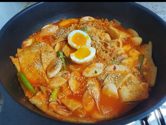 재료멸치육수 (다시마, 멸치, 청양고추)떡국 떡어묵고춧가루고추장국간장대파간 마늘신라면 1개반숙 한개후추가루참기름깨설탕ㅡ선택(넣음 무조건 더 맛있음)