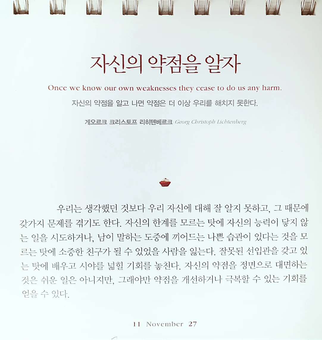 자신의 약점을 알고 나면 약점은 더 이상 우리를 해치지 못한다.