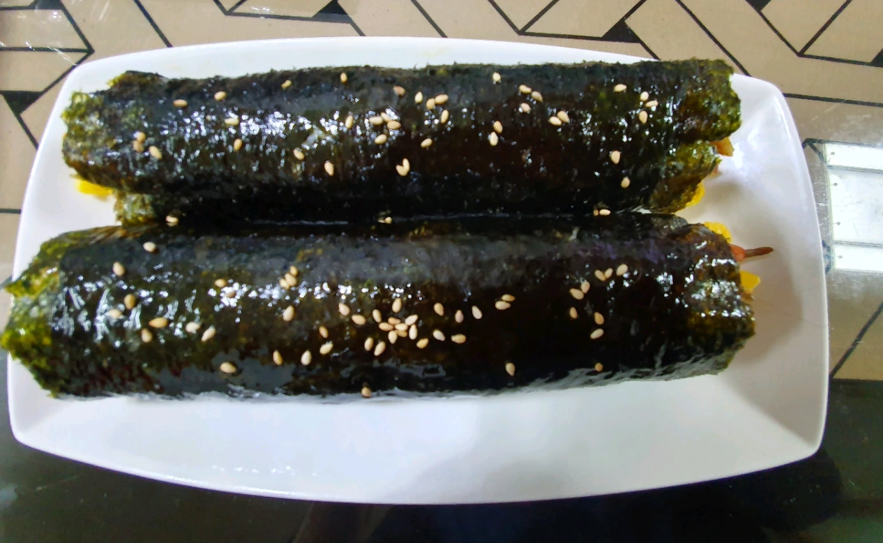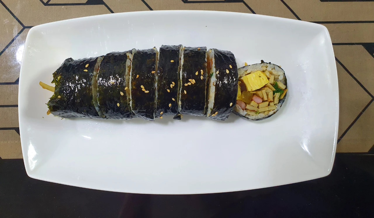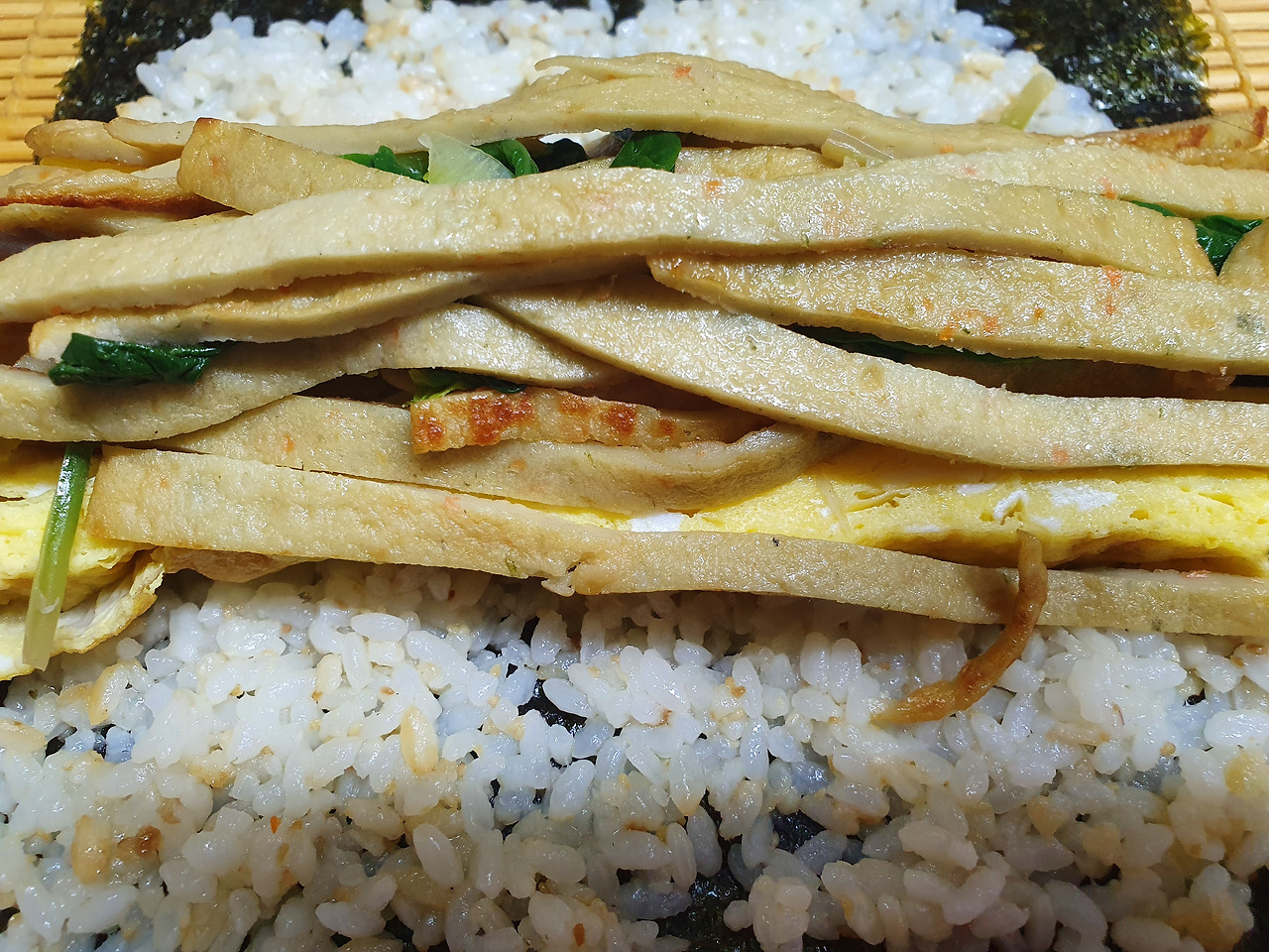 재료김밥용 김밥 1 공기계란납작오뎅단무지우엉ㅡ선택햄ㅡ 선택시금치ㅡ선택소금, 참기름, 깨