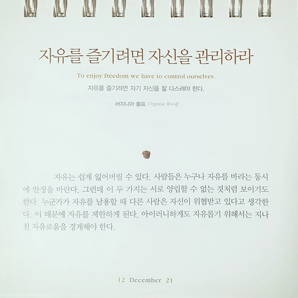 자유를 즐기려면 자기 자신을 잘 다스려야 한다.
