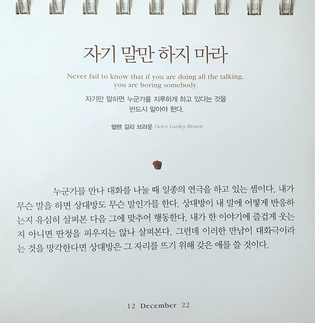 자기만 말하면 누군가를 지루하게 하고 있다는 것을 반드시 알아야 한다. ㅡ헬렌 걸리 브라운 Helen Gurley Brownㅡ