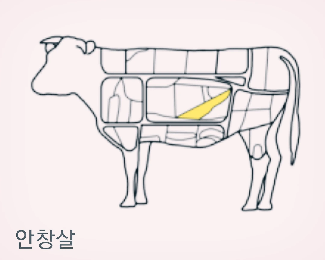 소의 갈비 부위 가운데 하나로, 갈비 안쪽의 가슴뼈 끝에서 허리뼈까지 가로지르는 근육인 횡격막을 분리해 정형한 것이다. 토시살과 더불어 내장을 붙들고 있는 부위이며, 얇고 평평한 근육으로, 소 한 마리당 약 1.2~1.8kg 정도 생산된다. 색이 짙고 근섬유 다발도 굵지만, 토시살에 비해서는 근내지방도 많이 함유한다. 조직감이 단단하고 고기의 결이 거칠지만 육즙이 진하며 구웠을 때 식감이 쫄깃쫄깃해 구이로 먹는다.