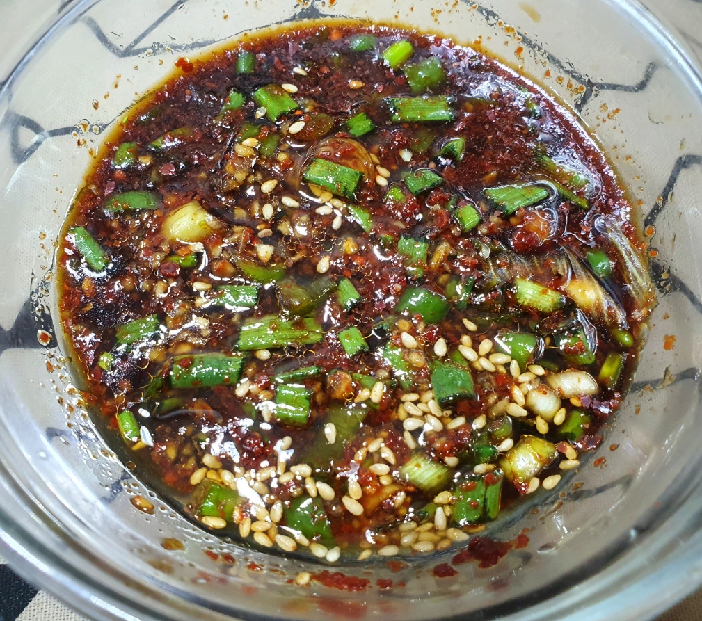 재료쪽파 한 단오징어 두 마리 (소)청양고추ㅡ선택부침가루양념간장ㅡ 진간장, 국간장, 다진 마늘, 청양고추, 고춧가루, 식초, 참기름, 깨