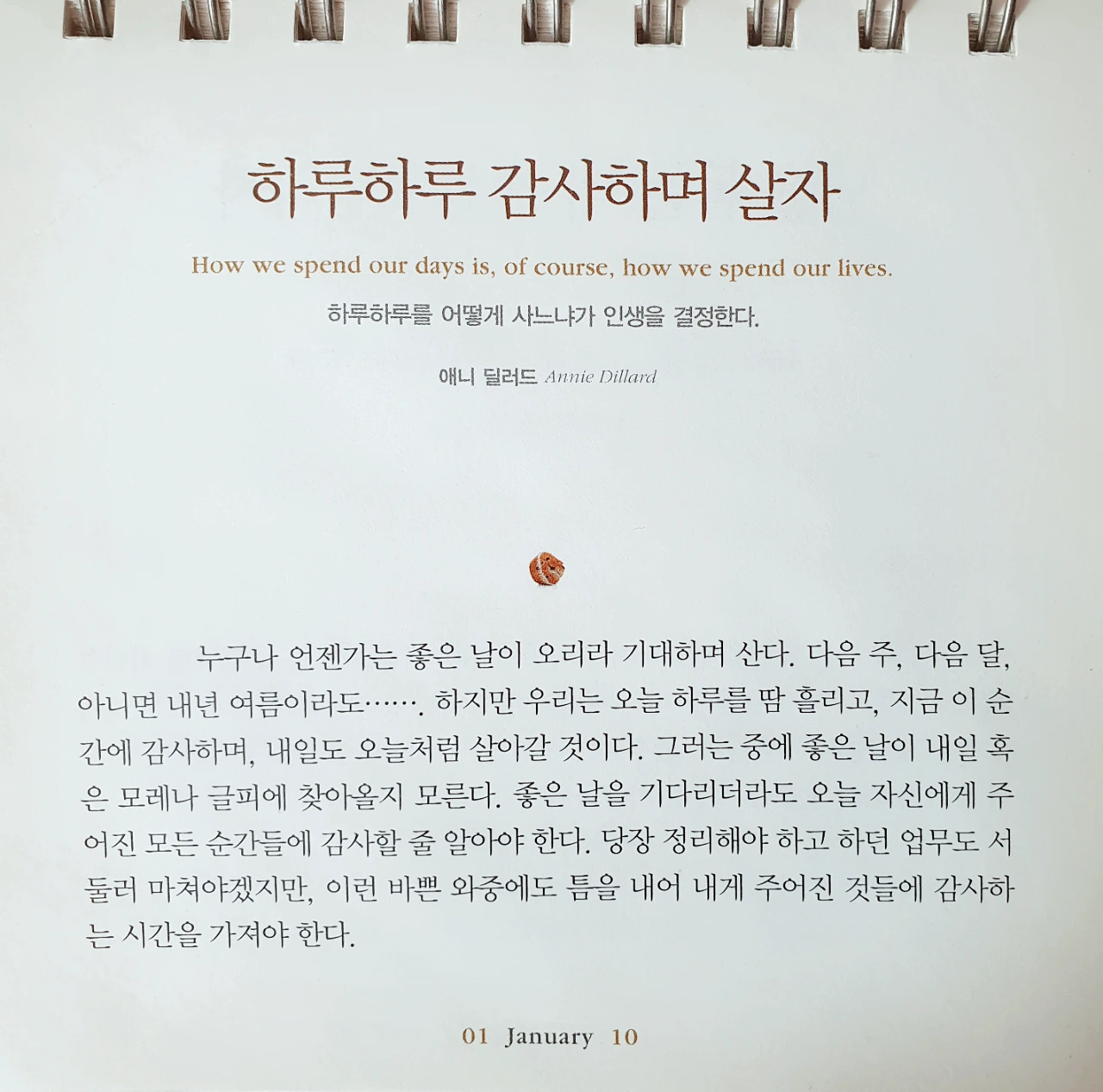 하루하루 감사하며 살자How we spend our days is, of course, how we spend our lives.하루하루를 어떻게 사느냐가 인생을 결정한다.ㅡ애니 딜러드 Annie Dillardㅡ