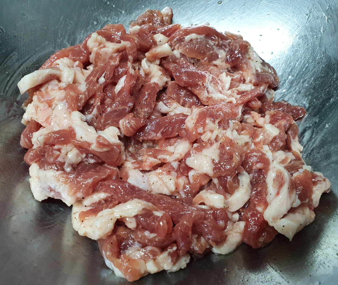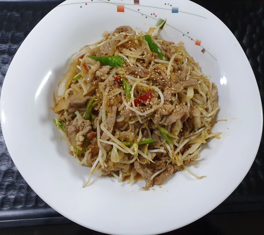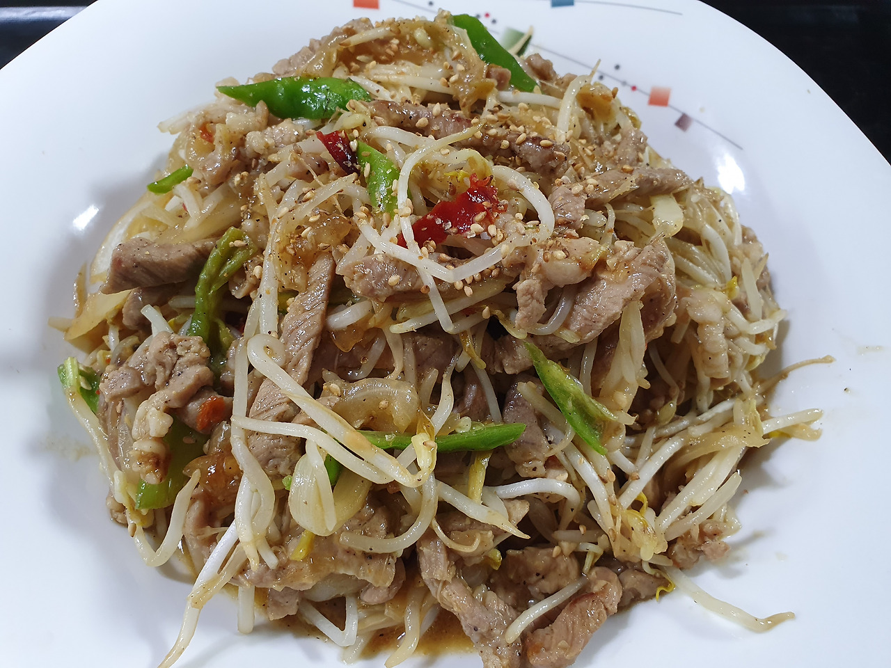 재료돼지고기 잡채용- 반 근숙주- 두봉 (보통 한봉)대파다진 마늘베트남 고추-선택올리브유-2큰술참기름-1큰술양파- 반개진간장- 2큰술멸치액젓- 1큰술맛술-1큰술전분 -1큰술-선택식초-2큰술후춧가루