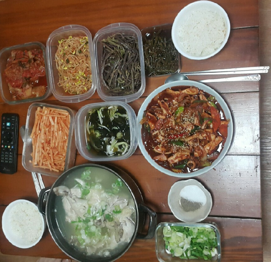 엄마 밥상이다. 동생이 닭도 엄청 좋아하니...
