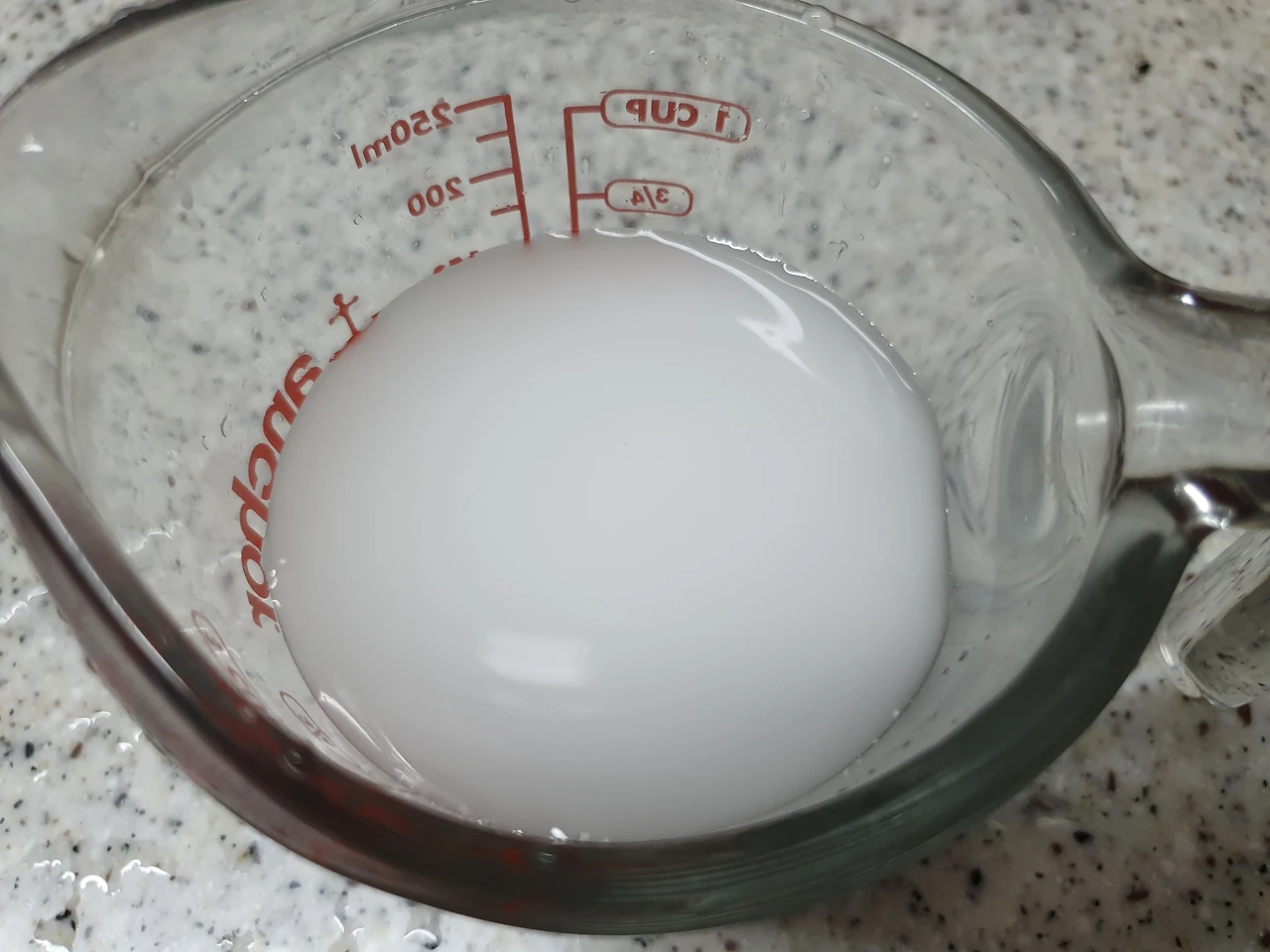 "전분물을 만들어야 하는데 2스푼에 물 반 컵으로 좀 만들어 주슝"