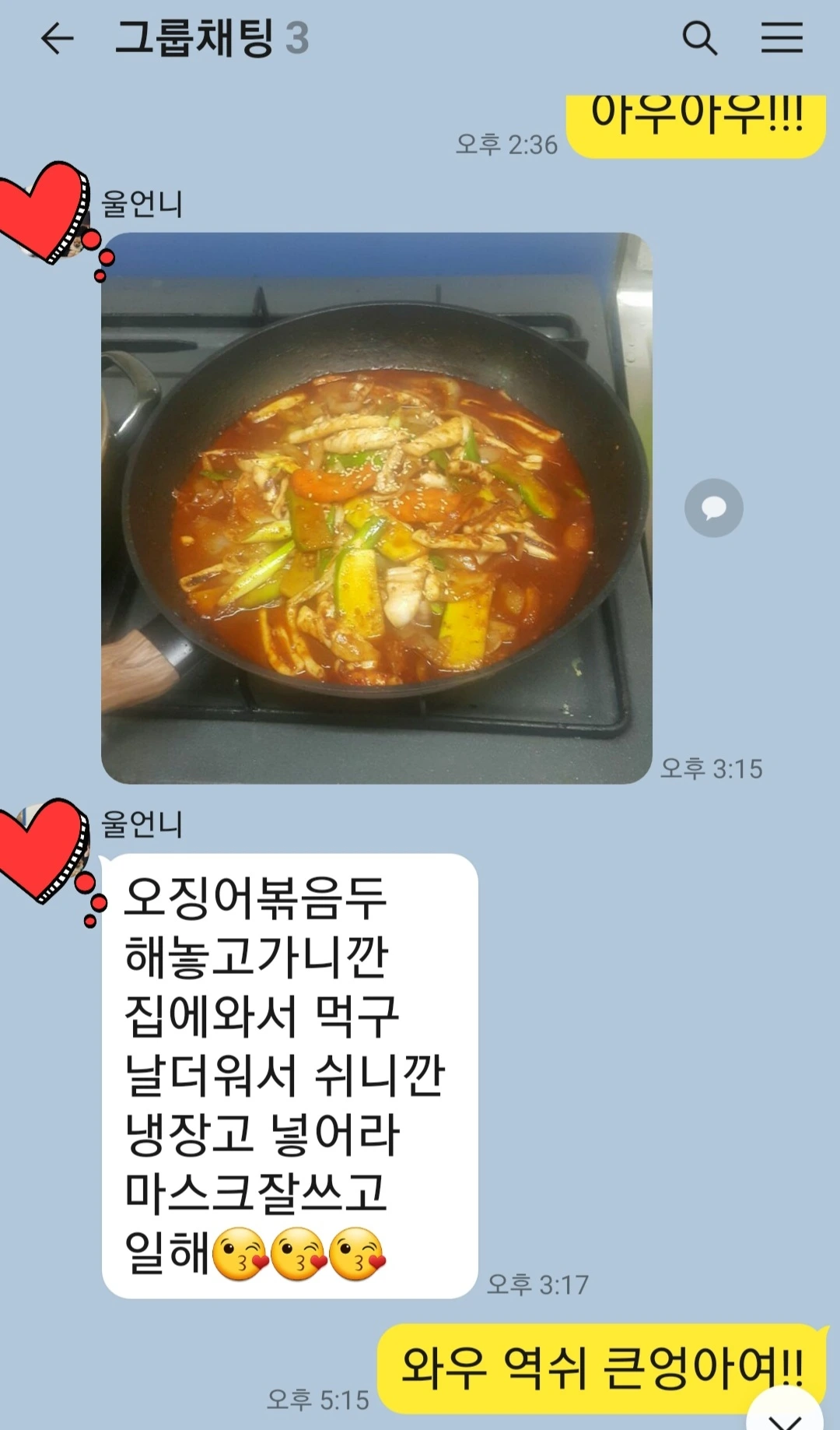 "그래도 코로나때나 내가 가지 언제 가니ㅠㅠㅠ 하루하루 아무 일 없는 것도 감사한데 오징어볶음이 뭐 어렵다고... "
