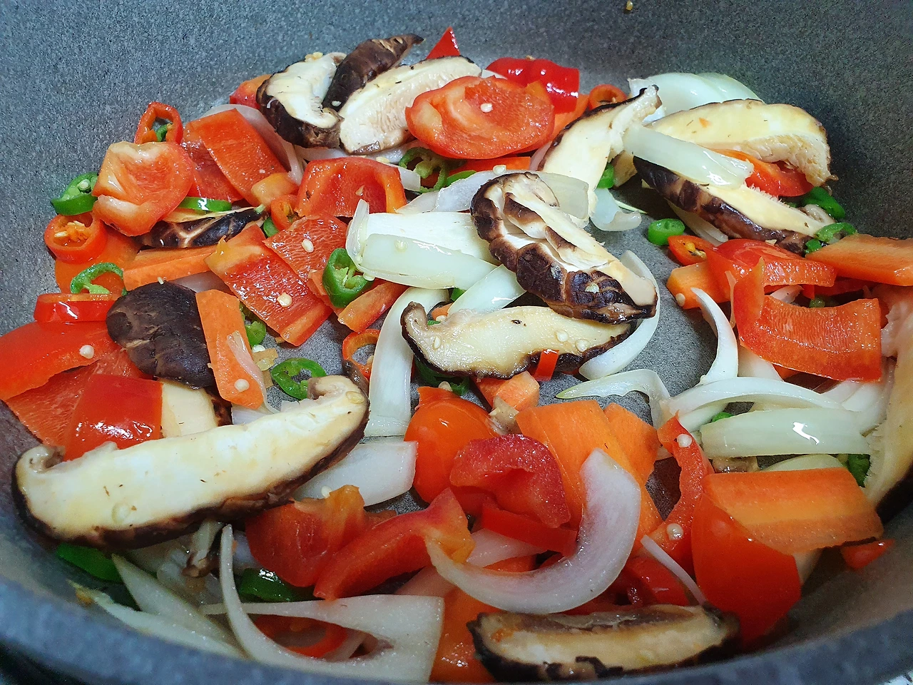 "우와~~~ 표고에 피망에 진짜 맛있겠다 ㅋㅋㅋ"