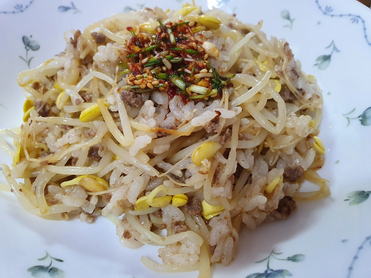 재료(2인분)쌀 1컵콩나물 -두 줌(150g)콩나물 데친 물-1컵 1/4 (250ml)소금 -약간소고기(다짐육) 60g들기름 2큰술간장 1작은술맛술 1작은술 (선택)_______________달래 양념간장달래, 다진 마늘, 다진 파, 간장, 참기름, 깨, 고춧가루(선택)