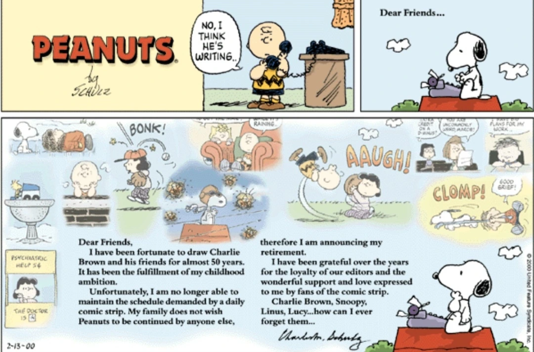 거의 50년 동안 찰리 브라운과 그의 친구들을 그릴 수 있어서 매우 행복했었지.