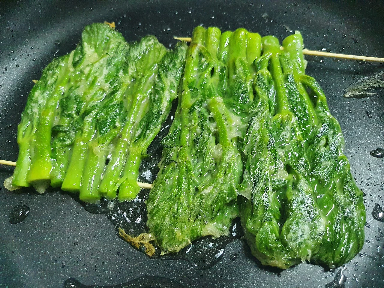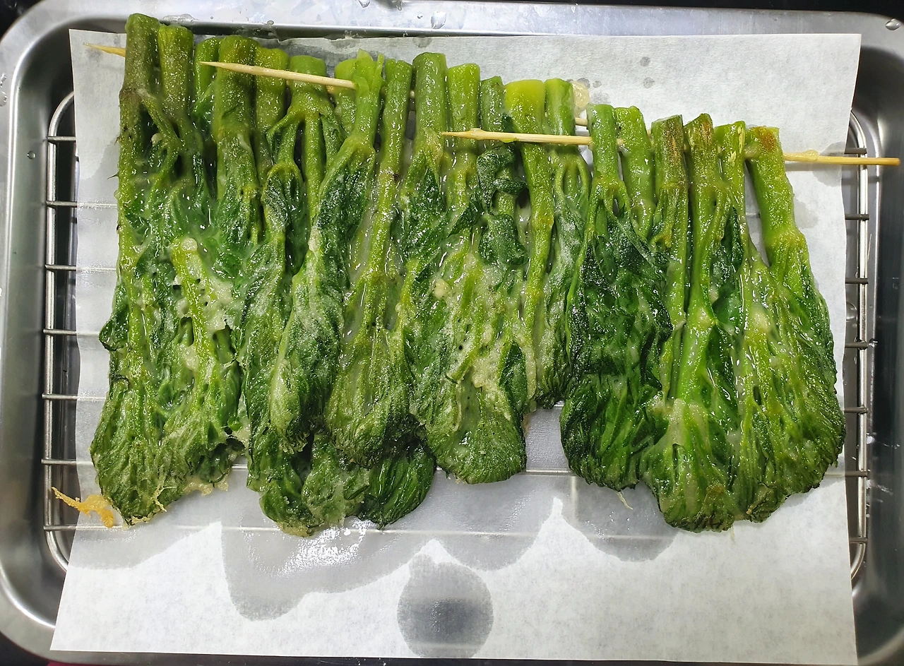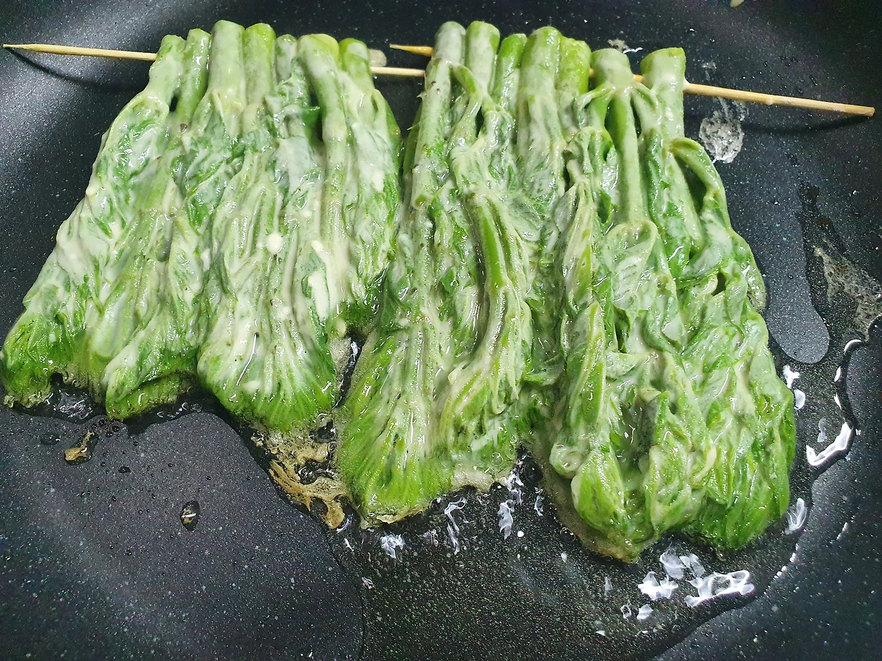 그냥 부쳐도 될 것을 꼬치에 꽂으니 연둣빛 자태가~~~