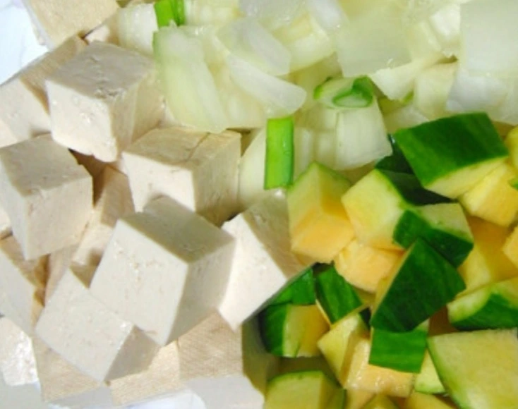 두부, 호박도 깍둑썰기로 썰어 넣음!