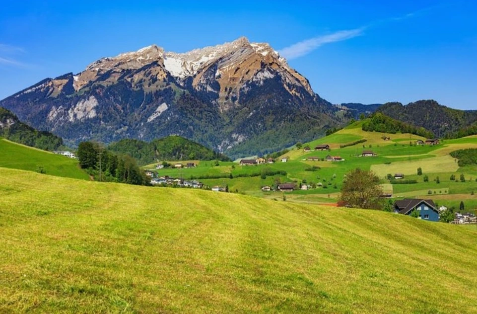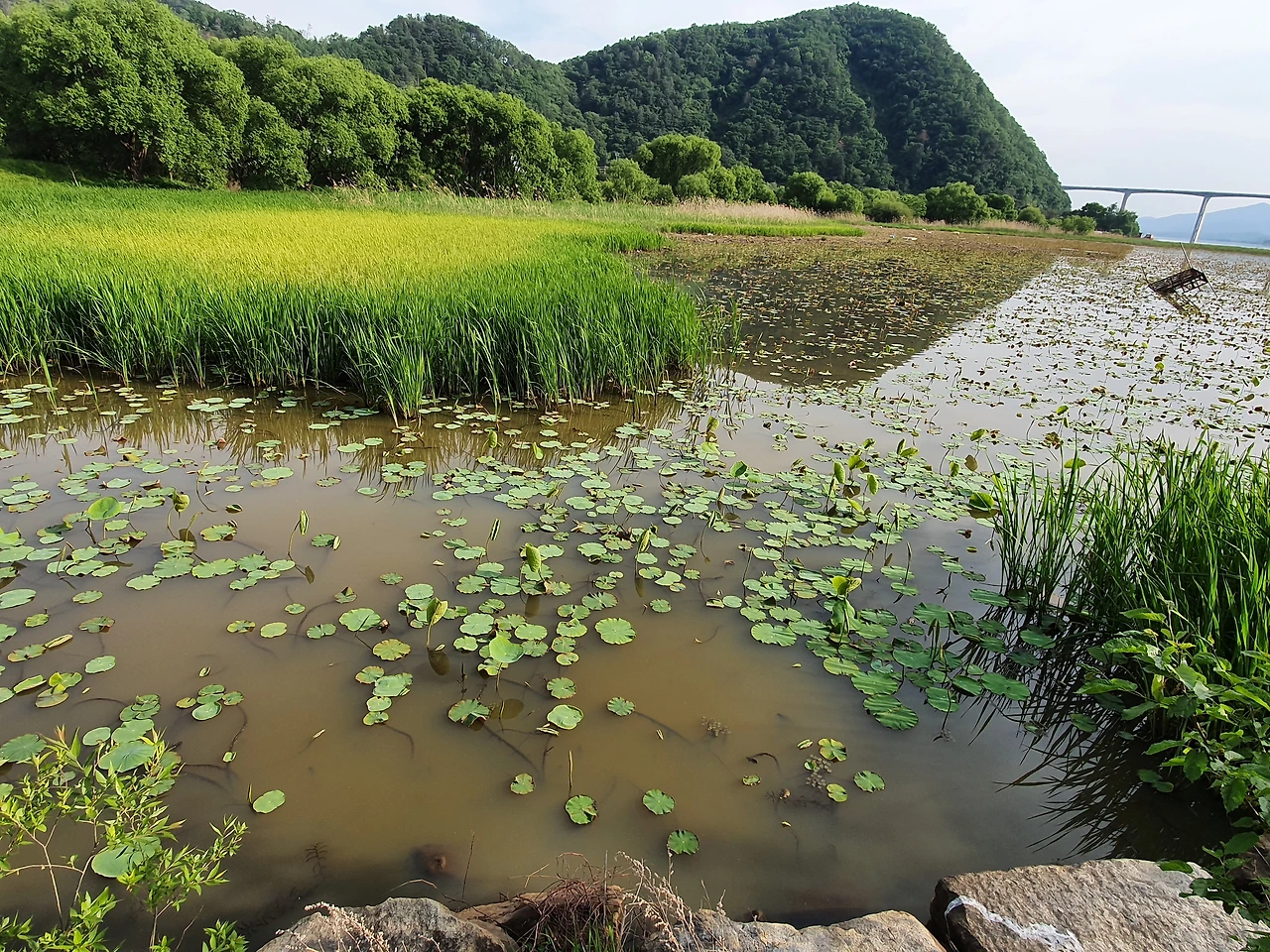 살짝 경사진 언덕 위에 앞이 시원하게 보이는 뷰...