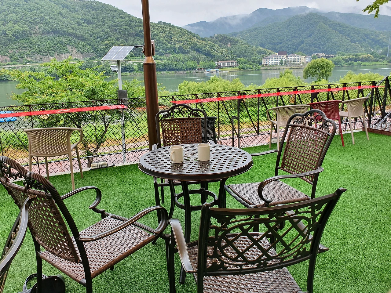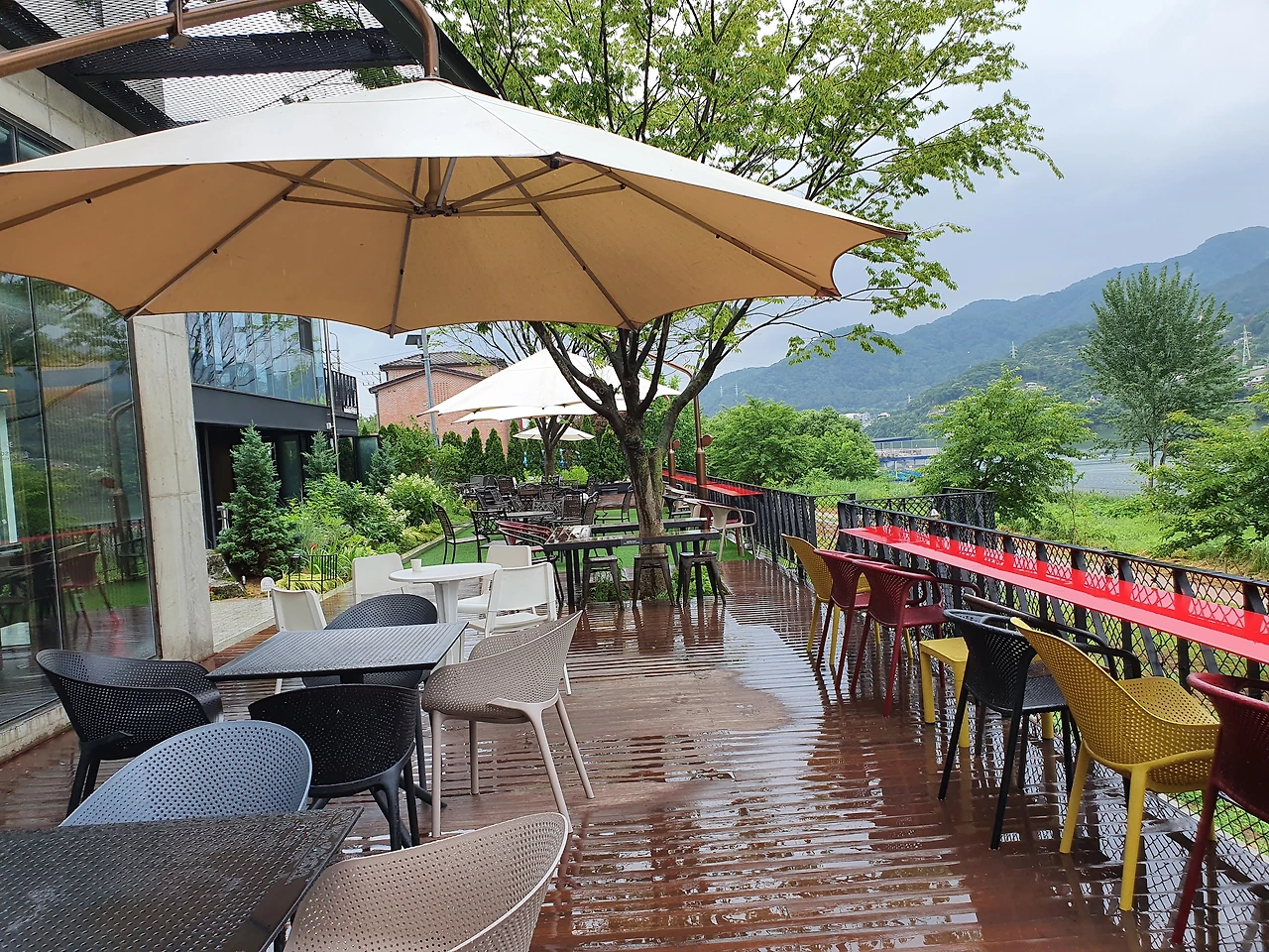 코로나로 인해 식당에서 거리두기를 하고 테이블에 앉는다. 아침 일찍 첫 손님으로 입장하니 딱 두 팀뿐이다.