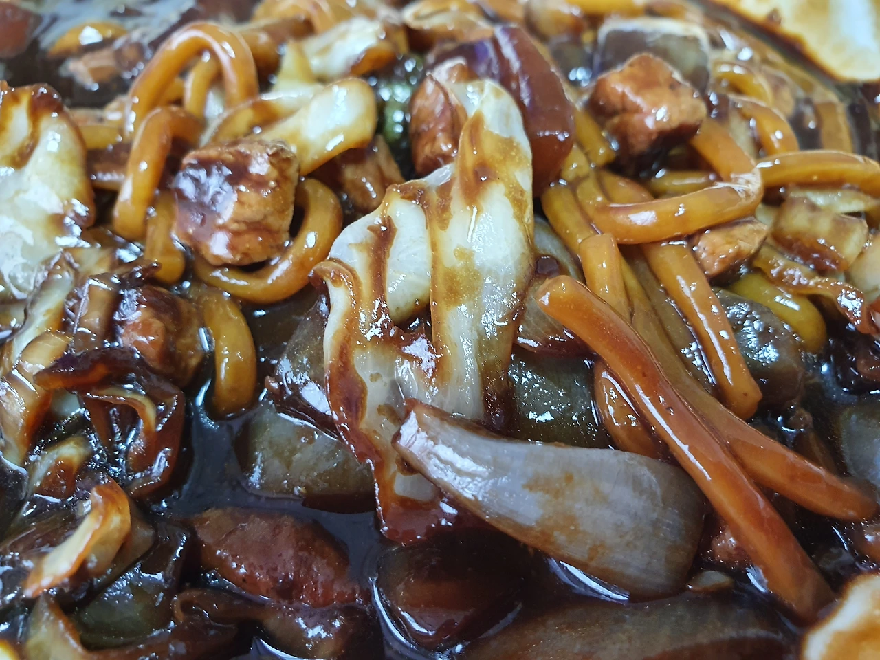 짜장 소스를 대량으로 한꺼번에 만들어 놓고 주문이 들어오면 소스를 데워 면에 부어주는 일반 짜장과 달리