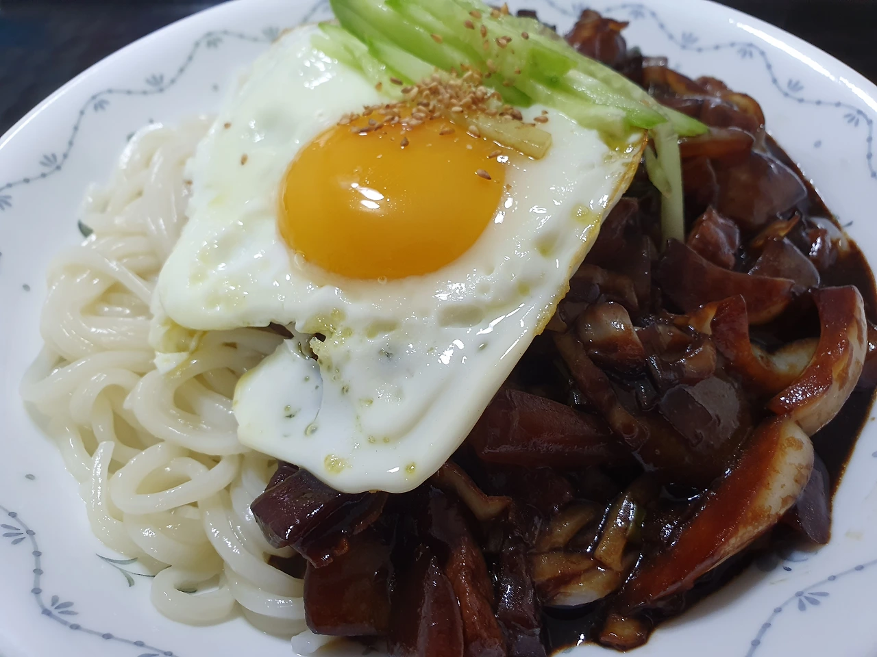 살짝 당뇨가 있는 홍 집사는 혈당관리를 해야 하므로 탄수화물을 멀리하는 편이다. 중국집도 그전에 비하면 열에 한번 정도 가는 셈이다. 그럼에도 불구하고 어쩌다 갑자기 짜장면이 먹고 싶으면 시중에서 파는 짜파게티를 끓여 먹기도 한다. 인스턴트의 첨가 수프는 말해 뭣하리 그냥 입에 짝짝 붙는다. 그래도 극복할 수 없는 건 역시 면과 소스 그리고 야채 부분이다.