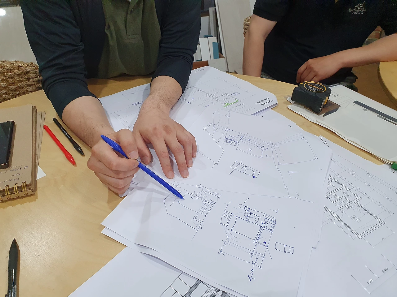 건축주의 말을 경청하는 인테리어 디자이너.