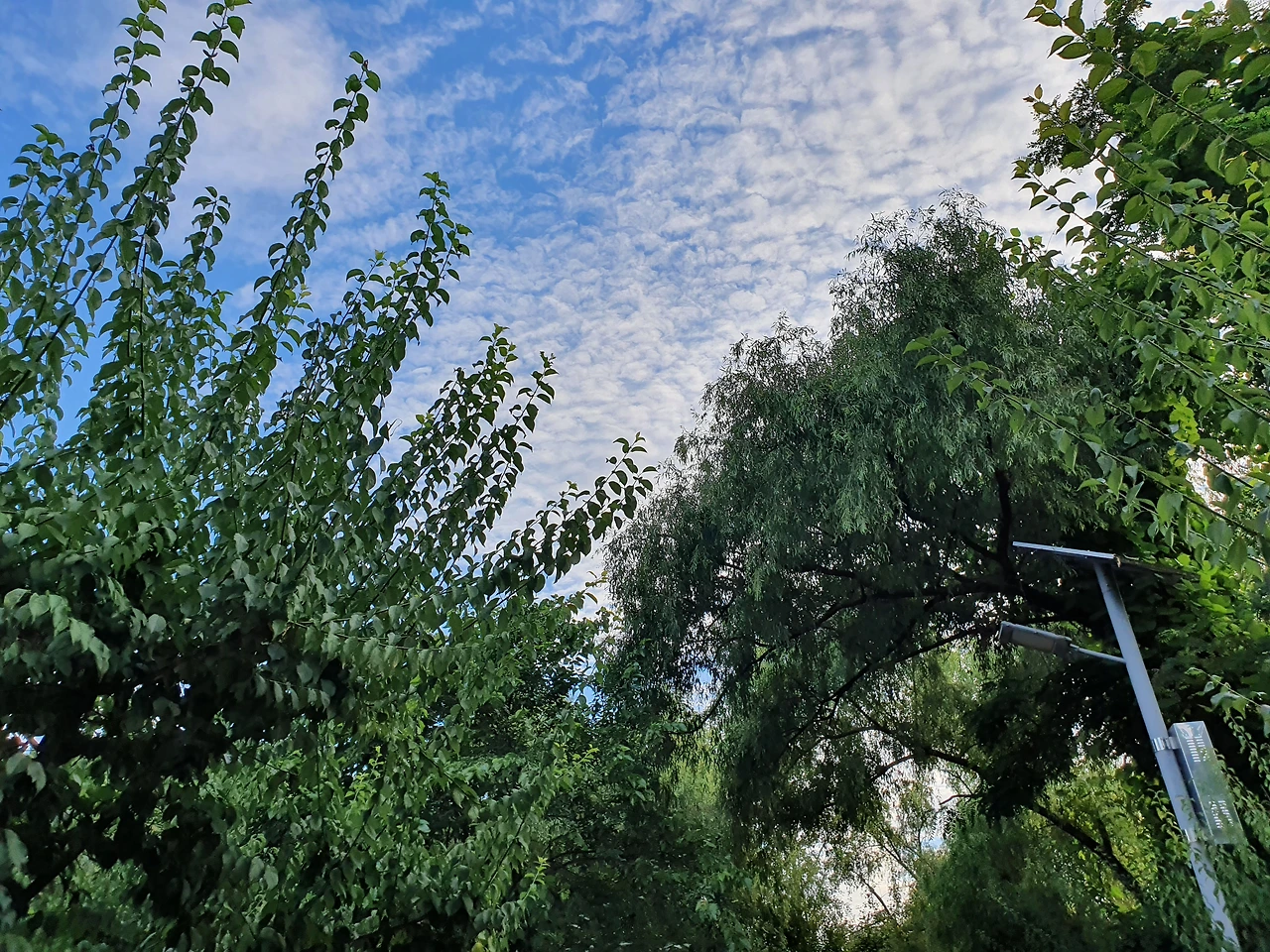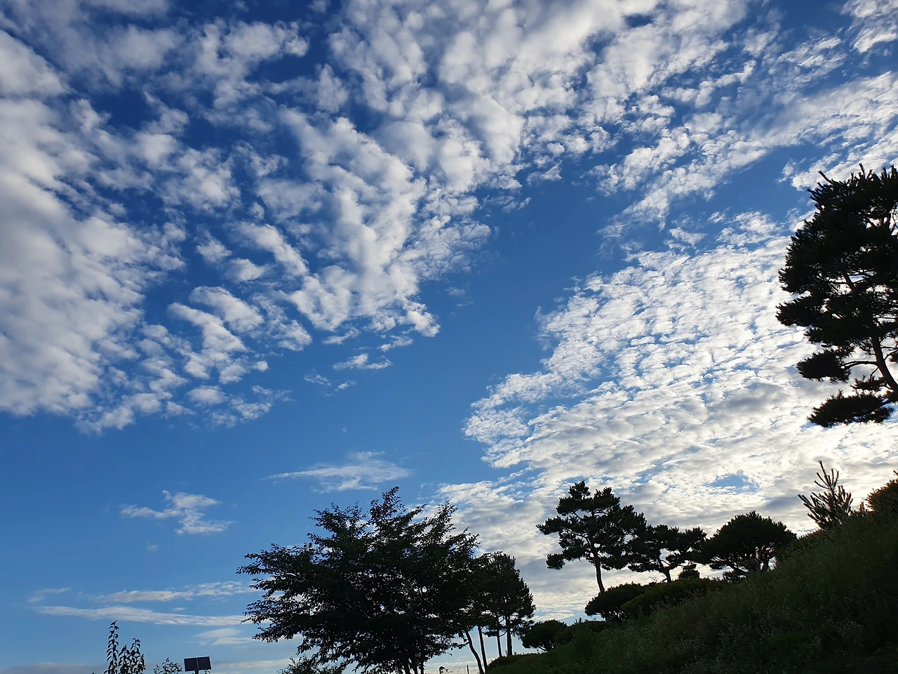맑고 파란 하늘에 하얀 구름이 그림 같다.